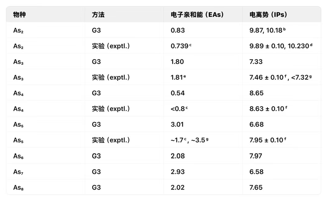 我们希望我们的理论预测将为进一步实验研究这些重要的砷团簇提供强大的动力。