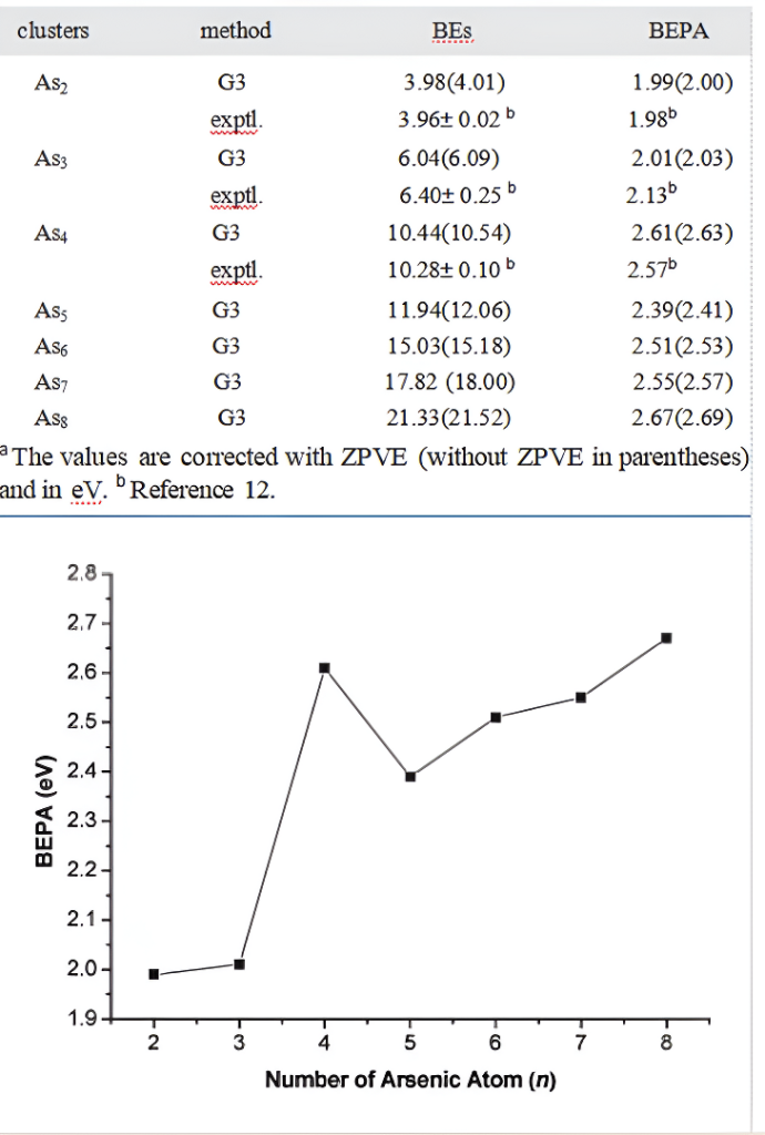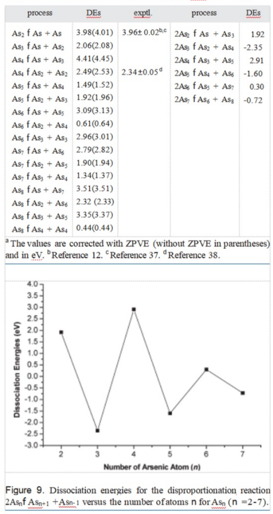 表3. Asₙ(n = 2 - 8)的解离能(DEs)