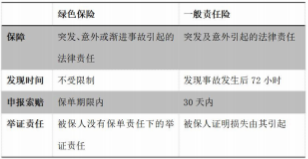 表 1 绿色保险与一般责任险环境污染事故责任条款比较