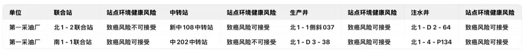 风险评估结果表明,北1-2联合站、中心202号输油站等部分场址土壤中的总石油烃对场站工作人员具有较高的健康风险。