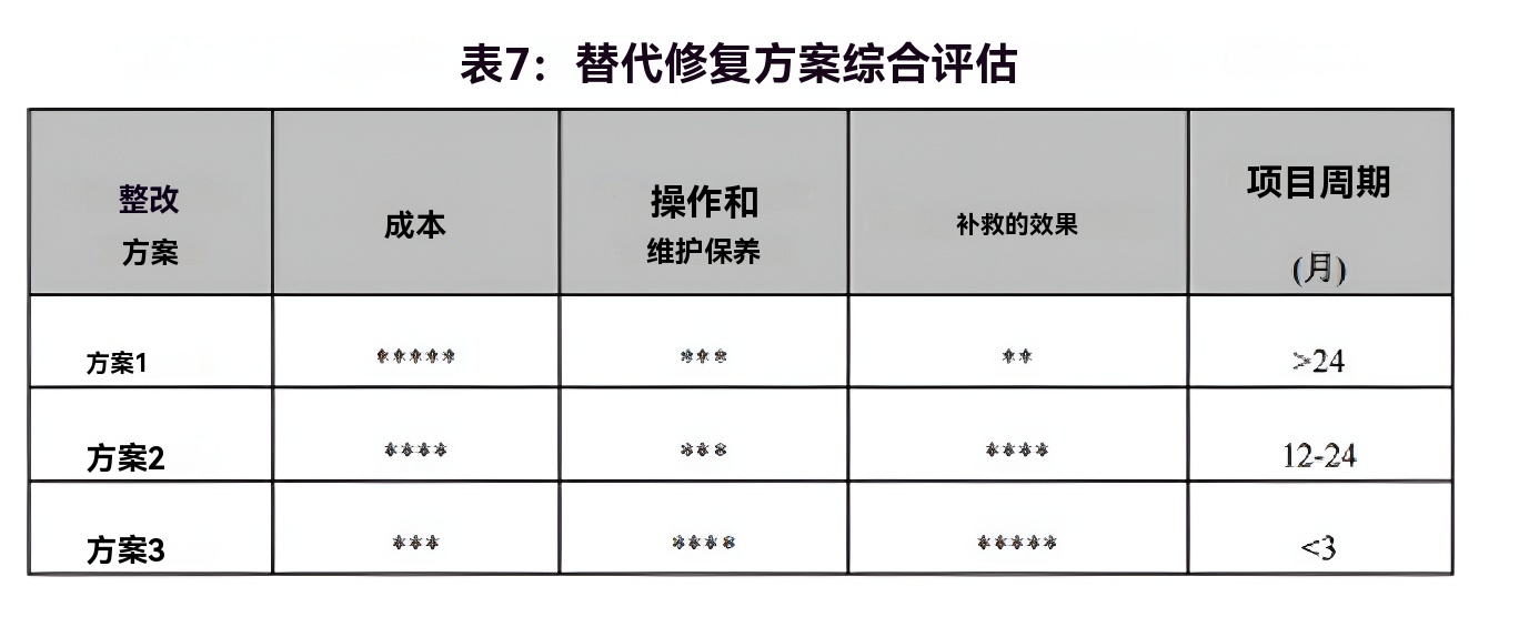 Note:注:评估权重;符号数量越多,方案所达到的评估等级越高。由于场地修复存在广泛的不确定性,对于原位修复和异位生物修复,项目周期主要指污染物浓度显著降低的时间。最终项目周期取决于修复目标、场地水文地质特征、污染物特性等诸多因素,存在一定程度的不确定性。